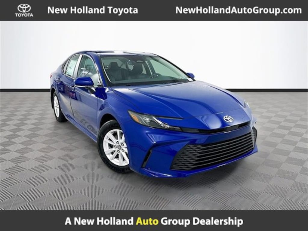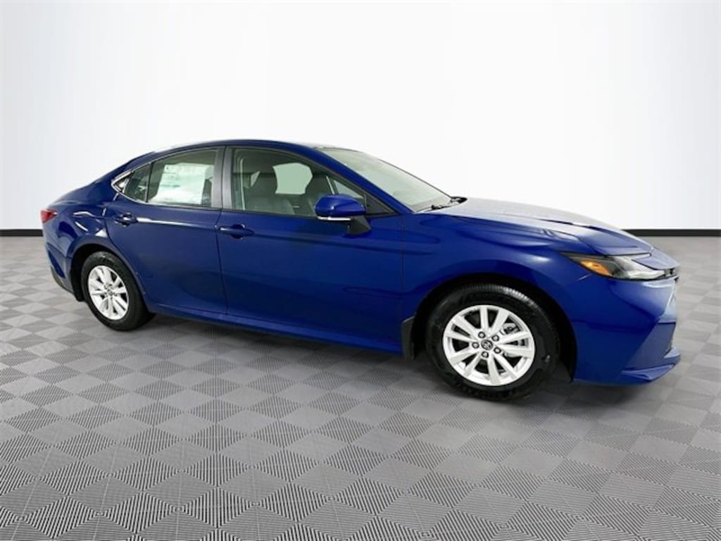Blue 2026 Toyota Camry LE FWD 2.5L 4-Cylinder 16V DOHC 4D Sedan eCVT Blk Fabric Cloth, 4-Wheel Disc Brakes, 6 Speakers, ABS brakes, Air Conditioning, All Weather Floor Protection, Alloy wheels, AM/FM radio: SiriusXM, Apple CarPlay/Android Auto, Auto High-beam Headlights, Auto-Dimming Rearview Mirror with HomeLink, Automatic temperature control, Brake assist, Bumpers: body-color, Cold Weather Package, Convenience Package, Delay-off headlights, Door Edge Guard, Driver door bin, Driver vanity mirror, Dual front impact airbags, Dual front side impact airbags, Electronic Stability Control, Emergency communication system: Safety Connect (5-year trial), Exterior Parking Camera Rear, Fabric Seat Trim, Four wheel independent suspension, Front anti-roll bar, Front Bucket Seats, Front Center Armrest, Front dual zone A/C, Front reading lights, Front Seats, Fully automatic headlights, Heated door mirrors, Heated Front Seats, Illuminated entry, Knee airbag, Low tire pressure warning, Mudguards, Occupant sensing airbag, Outside temperature display, Overhead airbag, Overhead console, Panic alarm, Passenger door bin, Passenger vanity mirror, Power door mirrors, Power steering, Power windows, Radio data system, Radio: 8 Toyota Audio Multimedia, Rear anti-roll bar, Rear seat center armrest, Rear window defroster, Remote keyless entry, Security system, Smart Key System on Front Doors, Speed control, Speed-sensing steering, Split folding rear seat, Steering wheel mounted audio controls, Telescoping steering wheel, Tilt steering wheel, Traction control, Trip computer, Turn signal indicator mirrors, Variably intermittent wipers, Wheels: 16 10-Spoke Silver-Painted Alloy, Blk Fabric Cloth.