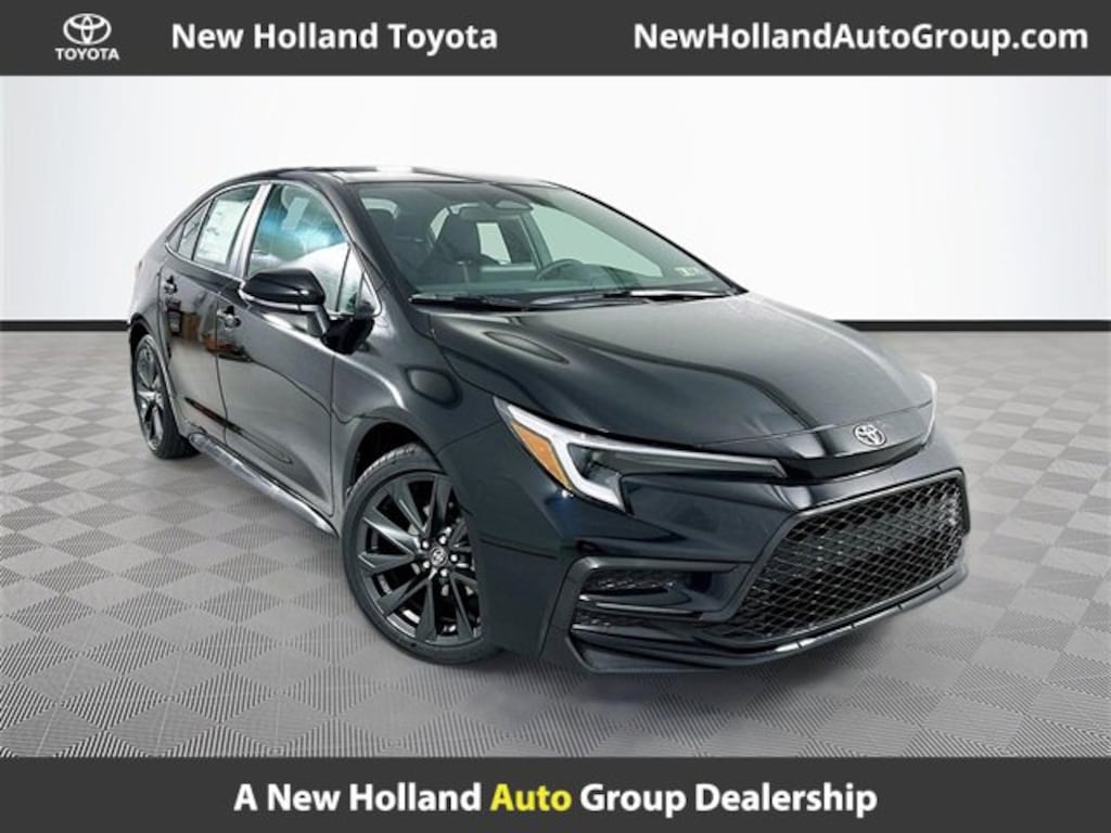 Midnight Black 2026 Toyota Corolla SE FWD 2.0L I4 PDI DOHC 16V LEV3-SULEV30 169hp 4D Sedan CVT 4-Wheel Disc Brakes, 6 Speakers, ABS brakes, Air Conditioning, All Weather Floor Liner Package (TMS), Alloy wheels, AM/FM radio: SiriusXM, Apple CarPlay/Android Auto, Auto High-beam Headlights, Automatic temperature control, Brake assist, Bumpers: body-color, Delay-off headlights, Door Edge Guards (TMS), Driver door bin, Driver vanity mirror, Dual front impact airbags, Dual front side impact airbags, Electronic Stability Control, Emergency communication system: Safety Connect (up to 10-year trial subscription), Exterior Parking Camera Rear, Fabric Seat Trim, Four wheel independent suspension, Front anti-roll bar, Front Bucket Seats, Front Center Armrest, Front reading lights, Front Sport Seats, Fully automatic headlights, Heated door mirrors, Illuminated entry, Knee airbag, Leather steering wheel, Low tire pressure warning, Mudguards (TMS), Occupant sensing airbag, Outside temperature display, Overhead airbag, Panic alarm, Passenger door bin, Passenger vanity mirror, Power door mirrors, Power steering, Power windows, Radio data system, Radio: 8 Toyota Audio Multimedia, Rear anti-roll bar, Rear seat center armrest, Rear side impact airbag, Rear window defroster, Remote keyless entry, Speed control, Split folding rear seat, Spoiler, Steering wheel mounted audio controls, Tachometer, Telescoping steering wheel, Tilt steering wheel, Traction control, Trip computer, Turn signal indicator mirrors, Variably intermittent wipers, Wheels: 18 Alloy w/Graphite-Colored Finish.