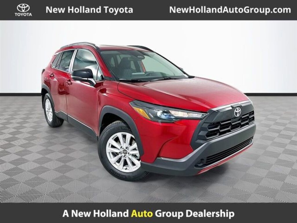 Red 2026 Toyota Corolla Cross LE AWD 2.0L I4 PDI DOHC 16V LEV3-SULEV30 169hp 4D Sport Utility CVT 4-Wheel Disc Brakes, 6 Speakers, ABS brakes, Air Conditioning, All Weather Floor/Cargo Liners, Alloy wheels, AM/FM radio: SiriusXM, Auto High-beam Headlights, Automatic temperature control, Brake assist, Bumpers: body-color, Cargo Cover, Delay-off headlights, Door Edge Guard, Driver door bin, Driver vanity mirror, Dual front impact airbags, Dual front side impact airbags, Electronic Stability Control, Emergency communication system: Safety Connect (10-year trial), Exterior Parking Camera Rear, Fabric Seat Trim, Four wheel independent suspension, Front anti-roll bar, Front Bucket Seats, Front Center Armrest, Front reading lights, Front Seats, Fully automatic headlights, Heated door mirrors, Illuminated entry, Knee airbag, Leather steering wheel, Low tire pressure warning, Mudguards, Occupant sensing airbag, Outside temperature display, Overhead airbag, Panic alarm, Passenger door bin, Passenger vanity mirror, Power door mirrors, Power steering, Power windows, Premium Paint, Radio data system, Radio: 8 Toyota Audio Multimedia with 6 Speakers, Rear anti-roll bar, Rear side impact airbag, Rear window defroster, Rear window wiper, Remote keyless entry, Speed control, Split folding rear seat, Spoiler, Steering wheel mounted audio controls, Tachometer, Telescoping steering wheel, Tilt steering wheel, Traction control, Trip computer, Turn signal indicator mirrors, Variably intermittent wipers, Wheels: 17 Silver-Painted Alloy.