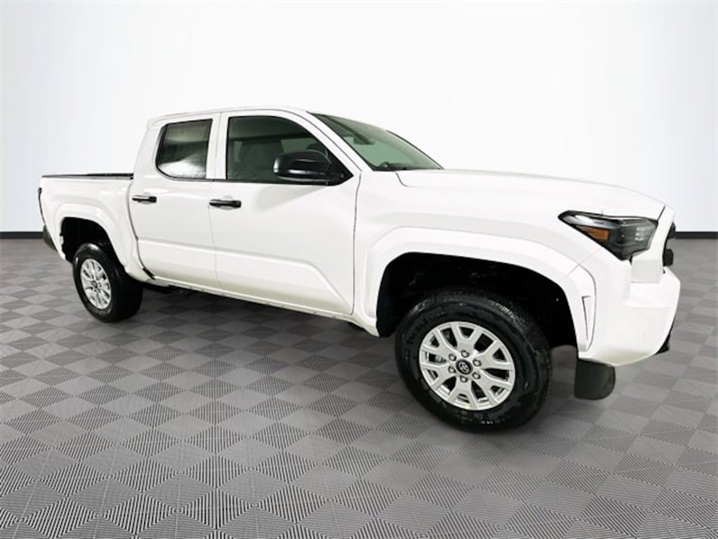 Ice 2026 Toyota Tacoma SR RWD 2.4L 4-Cylinder 4D Double Cab 8-Speed Automatic 3.583 Axle Ratio, 4-Wheel Disc Brakes, 6 Speakers, ABS brakes, Air Conditioning, All Weather Floor Liners, Alloy wheels, AM/FM radio: SiriusXM, Anti-whiplash front head restraints, Apple CarPlay/Android Auto, Auto High-beam Headlights, Blind Spot Monitor, Brake assist, Bumpers: body-color, Driver door bin, Dual front impact airbags, Dual front side impact airbags, Electronic Stability Control, Emergency communication system: Safety Connect (up to 10-year trial subscription), Exterior Parking Camera Rear, Fabric Seat Trim, Front anti-roll bar, Front Bucket Seats, Front Center Armrest, Front reading lights, Front wheel independent suspension, Fully automatic headlights, Heated door mirrors, Illuminated entry, Knee airbag, Low tire pressure warning, Occupant sensing airbag, Outside temperature display, Overhead airbag, Overhead console, Passenger door bin, Power door mirrors, Power steering, Power windows, Radio: 8 Toyota Audio Multimedia, Rear step bumper, Rear window defroster, Remote keyless entry, Smart Key w/Digital Key Technology, Speed control, Speed-sensing steering, Split folding rear seat, SR Upgrade Package, Steering wheel mounted audio controls, Tachometer, Telescoping steering wheel, Tilt steering wheel, Traction control, Trip computer, Variably intermittent wipers, Wheels: 17 Styled Alloy.