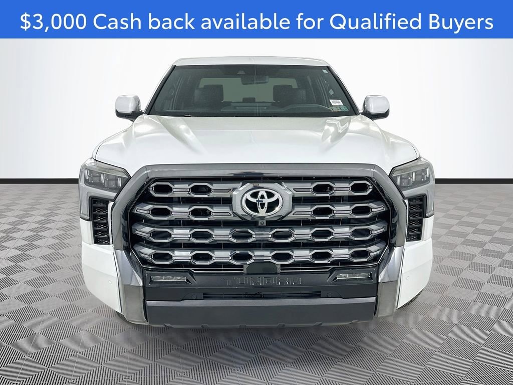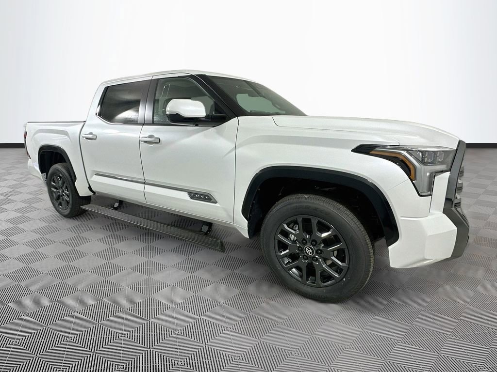 Pear 2026 Toyota Tundra Platinum 4WD 3.4L V6 4D CrewMax 10-Speed Automatic 4WD, Black Leather, 10-Way Power Adjustable Heated and Ventilated Front Seats, 12 Speakers, 3.31 Axle Ratio, 4-Wheel Disc Brakes, ABS brakes, Air Conditioning, All Weather Floor Liners, Alloy wheels, AM/FM radio: SiriusXM, Apple CarPlay/Android Auto, Auto High-beam Headlights, Auto-dimming door mirrors, Auto-dimming Rear-View mirror, Automatic temperature control, Brake assist, Bumpers: body-color, Compass, Delay-off headlights, Driver door bin, Driver vanity mirror, Dual front impact airbags, Dual front side impact airbags, Electronic Stability Control, Emergency communication system: Safety Connect (up to 10-year trial subscription), Exterior Parking Camera Rear, Front anti-roll bar, Front Bucket Seats, Front Center Armrest, Front dual zone A/C, Front fog lights, Front reading lights, Front wheel independent suspension, Fully automatic headlights, Garage door transmitter: HomeLink, Head Up Display (HUD), Heated door mirrors, Heated front seats, Heated rear seats, Heated steering wheel, Illuminated entry, Knee airbag, Leather Shift Knob, Leather steering wheel, Low tire pressure warning, Memory seat, Navigation system: Drive Connect Cloud Navigation (1-year trial subscription), Occupant sensing airbag, Outside temperature display, Overhead airbag, Overhead console, Panic alarm, Passenger door bin, Passenger vanity mirror, Power door mirrors, Power driver seat, Power moonroof, Power passenger seat, Power Running Boards, Power steering, Power windows, Premium Leather Seat Trim, Radio data system, Radio: Premium Audio, Rain sensing wipers, Rear reading lights, Rear seat center armrest, Rear step bumper, Rear window defroster, Remote keyless entry, Safety Connect, Security system, Speed control, Speed-sensing steering, Speed-Sensitive Wipers, Split folding rear seat, Steering wheel memory, Steering wheel mounted audio controls, Tachometer, Tailgate Insert - Black, Telescoping steering wheel, Tilt steering wheel, Traction control, Trip computer, Turn signal indicator mirrors, Variably intermittent wipers, Ventilated front seats, Ventilated rear seats, Voltmeter, Wheels: 20 Dark Painted Alloy, 4WD, Black Leather.