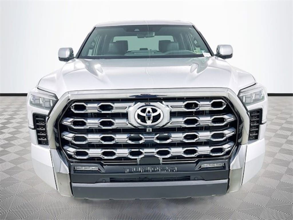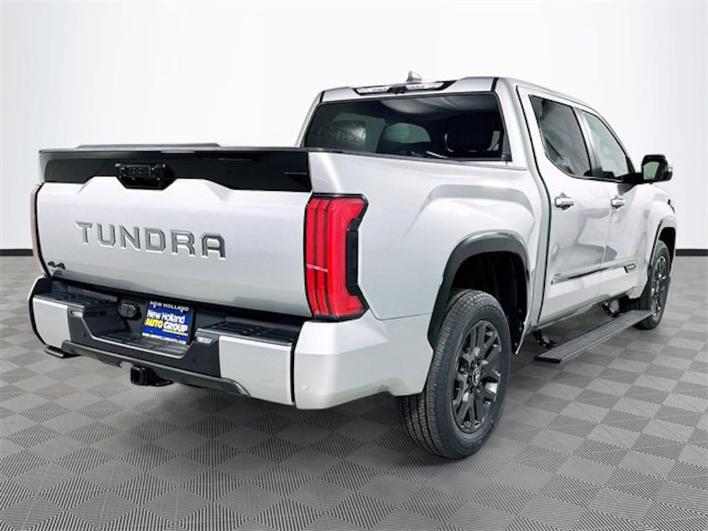 Silver 2026 Toyota Tundra Platinum 4WD 3.4L V6 4D CrewMax 10-Speed Automatic 4WD, Leather, 10-Way Power Adjustable Heated and Ventilated Front Seats, 12 Speakers, 3.31 Axle Ratio, 4-Wheel Disc Brakes, ABS brakes, Air Conditioning, All Weather Floor Liners, Alloy wheels, AM/FM radio: SiriusXM, Apple CarPlay/Android Auto, Auto High-beam Headlights, Auto-dimming door mirrors, Auto-dimming Rear-View mirror, Automatic temperature control, Brake assist, Bumpers: body-color, Compass, Delay-off headlights, Driver door bin, Driver vanity mirror, Dual front impact airbags, Dual front side impact airbags, Electronic Stability Control, Emergency communication system: Safety Connect (up to 10-year trial subscription), Exterior Parking Camera Rear, Front anti-roll bar, Front Bucket Seats, Front Center Armrest, Front dual zone A/C, Front fog lights, Front reading lights, Front wheel independent suspension, Fully automatic headlights, Garage door transmitter: HomeLink, Head Up Display (HUD), Heated door mirrors, Heated front seats, Heated rear seats, Heated steering wheel, Illuminated entry, Knee airbag, Leather Shift Knob, Leather steering wheel, Low tire pressure warning, Memory seat, Navigation system: Drive Connect Cloud Navigation (1-year trial subscription), Occupant sensing airbag, Outside temperature display, Overhead airbag, Overhead console, Panic alarm, Passenger door bin, Passenger vanity mirror, Power door mirrors, Power driver seat, Power moonroof, Power passenger seat, Power Running Boards, Power steering, Power windows, Premium Leather Seat Trim, Radio data system, Radio: Premium Audio, Rain sensing wipers, Rear reading lights, Rear seat center armrest, Rear step bumper, Rear window defroster, Remote keyless entry, Safety Connect, Security system, Speed control, Speed-sensing steering, Speed-Sensitive Wipers, Split folding rear seat, Stainless Steel Door Edge Guards, Steering wheel memory, Steering wheel mounted audio controls, Tachometer, Tailgate Insert - Chrome, Telescoping steering wheel, Tilt steering wheel, Traction control, Trip computer, Turn signal indicator mirrors, Variably intermittent wipers, Ventilated front seats, Ventilated rear seats, Voltmeter, Wheel Locks, Wheels: 20 Dark Painted Alloy, 4WD, Leather.