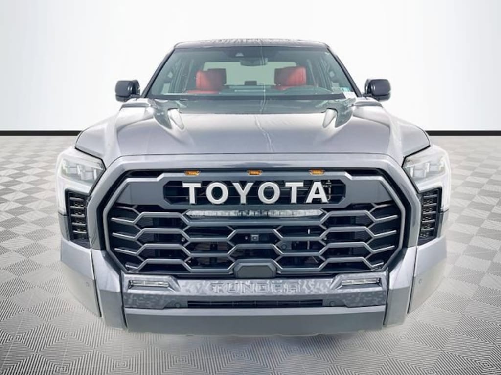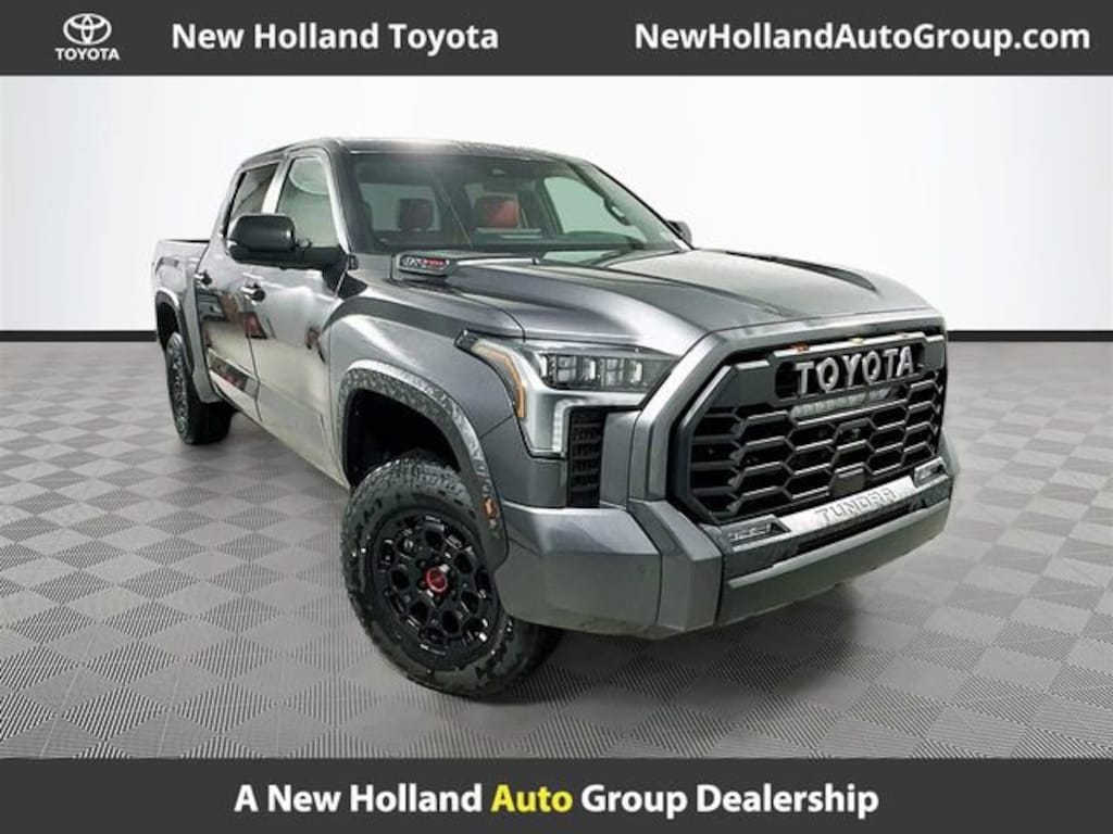 Magnetic Gray 2026 Toyota Tundra Hybrid TRD Pro 4WD 3.4L V6 4D CrewMax 10-Speed Automatic 3.4L V6, 12 Speakers, 3.31 Axle Ratio, 4-Wheel Disc Brakes, ABS brakes, Air Conditioning, Alloy wheels, AM/FM radio: SiriusXM, Apple CarPlay/Android Auto, Auto High-beam Headlights, Auto-dimming door mirrors, Auto-dimming Rear-View mirror, Automatic temperature control, Bed Step, Brake assist, Bumpers: body-color, Delay-off headlights, Driver door bin, Driver vanity mirror, Dual front impact airbags, Dual front side impact airbags, Electronic Stability Control, Emergency communication system: Safety Connect (up to 10-year trial subscription), Exterior Parking Camera Rear, Front anti-roll bar, Front Bucket Seats, Front Center Armrest, Front dual zone A/C, Front fog lights, Front reading lights, Front wheel independent suspension, Fully automatic headlights, Garage door transmitter: HomeLink, Heated and Ventilated Front Bucket Seats, Heated door mirrors, Heated front seats, Illuminated entry, Knee airbag, Leather Shift Knob, Leather steering wheel, Low tire pressure warning, Memory seat, Navigation system: Drive Connect Cloud Navigation (1-year trial subscription), Occupant sensing airbag, Outside temperature display, Overhead airbag, Overhead console, Panic alarm, Passenger door bin, Passenger vanity mirror, Power door mirrors, Power driver seat, Power moonroof, Power passenger seat, Power steering, Power windows, Radio data system, Radio: Premium Audio with JBL, Rear reading lights, Rear seat center armrest, Rear step bumper, Rear window defroster, Remote keyless entry, Security system, SofTex Seat Trim, Speed control, Speed-sensing steering, Split folding rear seat, Sport steering wheel, Stainless Steel Door Edge Guards, Steering wheel mounted audio controls, Tachometer, Telescoping steering wheel, Tilt steering wheel, Traction control, TRD Pro Package, TRD Pro Reflective Bed Lettering, Trip computer, Turn signal indicator mirrors, Variably intermittent wipers, Ventilated front seats, Voltmeter, Wheels: 18 Black Forged Aluminum BBS, 3.4L V6.