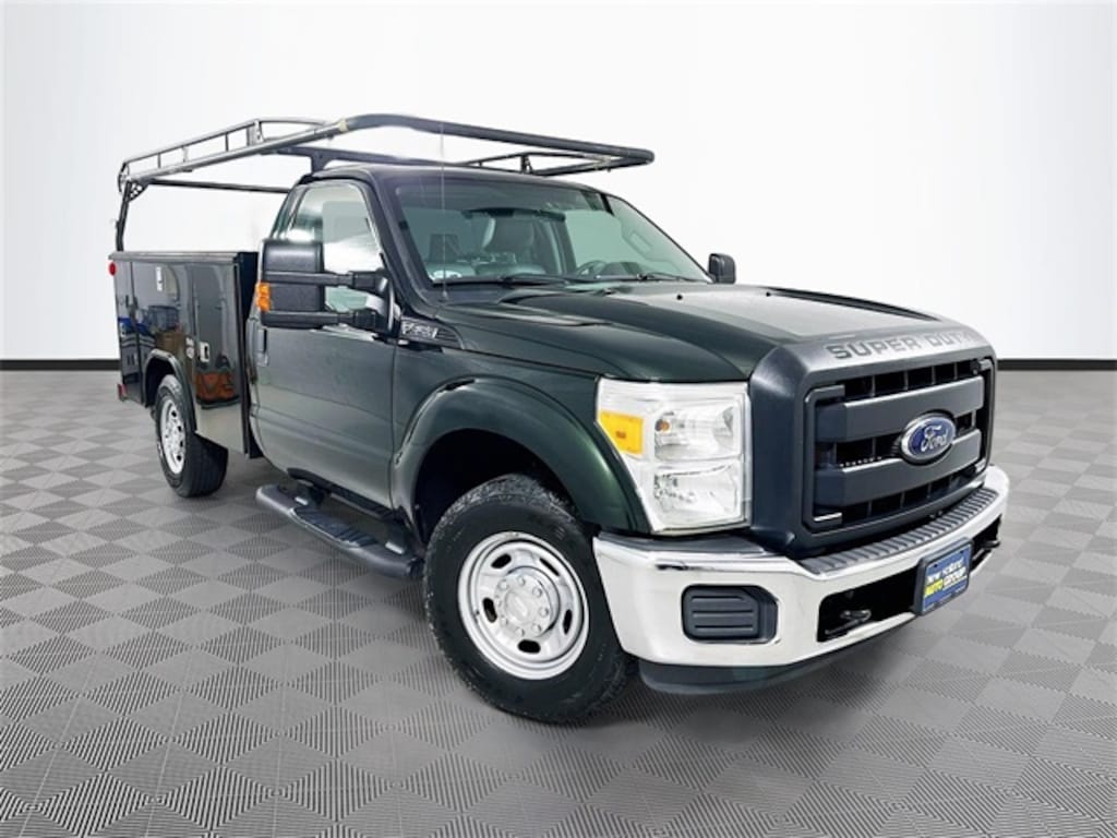 F-350 SuperDuty XL, 2D Standard Cab, 6.2L V8 EFI SOHC 16V, TorqShift 6-Speed Automatic with Overdrive, RWD, Green, Steel Vinyl, Air Conditioning, AM/FM radio, AM/FM Stereo w/Digital Clock, Cruise Control, GVWR: 10,000 lb Payload Package, Manual Telescoping Trailer-Tow Mirrors, Order Code 610A, Perimeter Anti-Theft Alarm, Power Equipment Group, Power Front Side Windows, Power Locks, Power steering, Radio: AM/FM Stereo/Single CD/MP3 Player, Remote Keyless Entry, Steering Wheel Audio Controls, XL Value Package, 17" Argent Painted Steel Wheels, 2 Speakers, 4-Wheel Disc Brakes, ABS brakes, Brake assist, Bright Chrome Hub Covers & Center Ornaments, Chrome Front Bumper, Chrome Rear Step Bumper, Cloth 40/20/40 Split Bench Seat, Dual front impact airbags, Dual front side impact airbags, Electronic Stability Control, Front anti-roll bar, Front Center Armrest w/Storage, Front reading lights, Front wheel independent suspension, HD Vinyl 40/20/40 Split Bench Seat, Low tire pressure warning, Outside temperature display, Overhead airbag, Passenger cancellable airbag, Passenger vanity mirror, Rear step bumper, SYNC Voice Activated Communication & Entertainment, Tachometer, Telescoping steering wheel, Tilt steering wheel, Traction control, Variably intermittent wipers, Wheels: 17" 6-Spoke Cast Aluminum (4), utility bed, F-350 SuperDuty XL, 2D Standard Cab, 6.2L V8 EFI SOHC 16V, TorqShift 6-Speed Automatic with Overdrive, RWD, Green, Steel Vinyl, Air Conditioning, AM/FM radio, AM/FM Stereo w/Digital Clock, Cruise Control, GVWR: 10,000 lb Payload Package, Manual Telescoping Trailer-Tow Mirrors, Order Code 610A, Perimeter Anti-Theft Alarm, Power Equipment Group, Power Front Side Windows, Power Locks, Power steering, Radio: AM/FM Stereo/Single CD/MP3 Player, Remote Keyless Entry, Steering Wheel Audio Controls, XL Value Package.