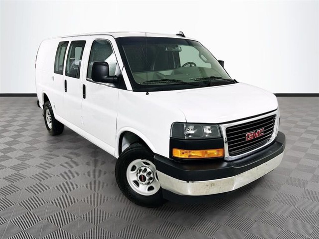 Savana 2500 Work Van, 3D Cargo Van, 4.3L V6, Summit White, Jet Black/Medium Dark Pewter Cloth, Chrome Appearance Package, Chrome Grille, Cruise Control, Driver Convenience Package, Front & Rear Chrome Bumpers w/Step-Pad, Preferred Equipment Group 1WT, Tilt Steering Wheel, 16" x 6.5" Steel Wheels, 2 Speakers, 3.42 Rear Axle Ratio, 4-Wheel Disc Brakes, ABS brakes, Air Conditioning, AM/FM radio, AM/FM Stereo w/MP3 Player, Black Rubberized-Vinyl Front Only Floor Covering, Delay-off headlights, Driver & Front Passenger High-Back Bucket Seats, Driver door bin, Driver's Seat Mounted Armrest, Dual front impact airbags, Dual front side impact airbags, Electronic Stability Control, Emergency communication system: OnStar and GMC connected services capable, Engine Cover Console w/Swing-Out Storage Bin, Fixed Rear Door Window Glass, Fixed Rear Side Door Window Glass, Front anti-roll bar, Front Bucket Seats, Front Reclining High-Back Bucket Seats, Front wheel independent suspension, Full-Length Black Rubberized-Vinyl Floor Covering, Fully automatic headlights, Heated door mirrors, Low tire pressure warning, Occupant sensing airbag, Overhead airbag, Passenger cancellable airbag, Passenger door bin, Passenger seat mounted armrest, Power door mirrors, Power steering, Power windows, Rear & Side Cargo Door Glass, Rear Side Door Glass Window Security Bar, Reclining Front Bucket Seats w/Inboard Armrests, Single-Zone Manual Air Conditioning, Tachometer, Traction control, Trip computer, Variably intermittent wipers, Vinyl Seat Trim, Voltmeter, Savana 2500 Work Van, 3D Cargo Van, 4.3L V6, Summit White, Jet Black/Medium Dark Pewter Cloth, Chrome Appearance Package, Chrome Grille, Cruise Control, Driver Convenience Package, Front & Rear Chrome Bumpers w/Step-Pad, Preferred Equipment Group 1WT, Tilt Steering Wheel.