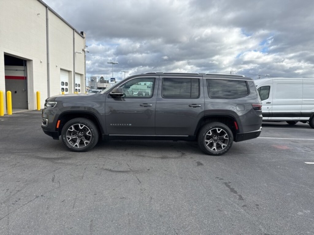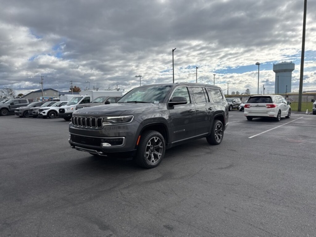 Wagoneer Series III, 4D Sport Utility, 5.7L V8, 4WD, Baltic Gray Metallic Clearcoat, Black Leather, 19 Speaker McIntosh Audio System, 20" x 9.0" Aluminum Wheels, 2nd Row Manual Window Shades, 3 Panel Sunroof, 3.92 Rear Axle Ratio, 7-Passenger Seating, Adjustable Roof Rail Crossbars, Advanced All Terrain Group, Cargo Cover, Chrome Tow Hooks, Convenience Group I, Drowsy Driver Detection, Electronic Rear Limited Slip Differential, Flexible Seating Group, Floor Console w/Cupholder, Fuel Tank Skid Plate Shield, HD Trailer Tow Package, Heavy-Duty Engine Cooling, Intersection Collision Assist System, Locking In-Vehicle Safe, Luxury Front & Rear Floor Mats, Navigation System, P&P Park & Unpark Assist w/Stop System, Power Deployable Running Boards, Power Tip/Slide Recline 2nd Row Buckets, Premium Group I (DISC), Quadra Drive II Badge, Quick Order Package 22N, Removable Rear Tow Hook, Reversible Carpet/Vinyl Cargo Mat, Selec-Speed Control, Surround View Camera System, Traffic Sign Recognition, Trailer Brake Control, Trailer Hitch Line-Up Assist, Trailer Hitch Zoom, 10 Speakers, 3rd row seats: bench, 4-Wheel Disc Brakes, ABS brakes, Adjustable pedals, Air Conditioning, Alloy wheels, AM/FM radio: SiriusXM with 360L, Anti-whiplash front head restraints, Audio memory, Auto High-beam Headlights, Auto-dimming door mirrors, Auto-dimming Rear-View mirror, Auto-leveling suspension, Automatic temperature control, Brake assist, Bumpers: body-color, Compass, Delay-off headlights, Driver door bin, Driver vanity mirror, Driver's Seat Mounted Armrest, Dual front impact airbags, Dual front side impact airbags, Electronic Stability Control, Exterior Parking Camera Rear, Four wheel independent suspension, Front anti-roll bar, Front Bucket Seats, Front Center Armrest w/Storage, Front dual zone A/C, Front fog lights, Front Passenger Interactive Display, Front reading lights, Fully automatic headlights, Garage door transmitter, Genuine wood console insert, Genuine wood dashboard insert, Genuine wood door panel insert, Heads-Up Display, Heated door mirrors, Heated front seats, Heated rear seats, Heated steering wheel, Illuminated entry, Knee airbag, Leather Trimmed Bucket Seats, Low tire pressure warning, Memory seat, Normal Duty Suspension, Occupant sensing airbag, Outside temperature display, Overhead airbag, Overhead console, Panic alarm, Passenger door bin, Passenger seat mounted armrest, Passenger vanity mirror, Pedal memory, Power adjustable front head restraints, Power door mirrors, Power driver seat, Power Liftgate, Power passenger seat, Power steering, Power windows, Radio data system, Radio: Uconnect 5 Nav w/10.1" Display, Rain sensing wipers, Rear air conditioning, Rear anti-roll bar, Rear dual zone A/C, Rear reading lights, Rear seat center armrest, Rear window defroster, Rear window wiper, Reclining 3rd row seat, Remote keyless entry, Security system, Speed control, Speed-sensing steering, Speed-Sensitive Wipers, Split folding rear seat, Steering wheel memory, Steering wheel mounted audio controls, Tachometer, Telescoping steering wheel, Tilt steering wheel, Tr
